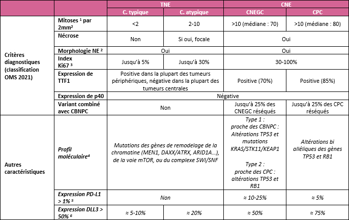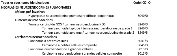 Récapitulatif des critères diagnostiques des différents néoplasmes neuroendocrines bronchiques (inspiré de classification OMS 2021)