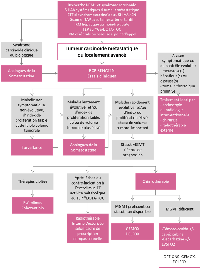 Modalités thérapeutiquesAlgorithme Arbre décisionnel pour la prise en charge des tumeurs carcinoïdes bronchiques métastatiques Voir le référentiel