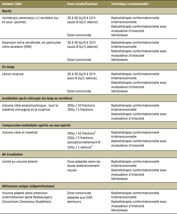 Synthèse des recommandations de la radiothérapie dans les métastases osseuses (Extrait de (143))