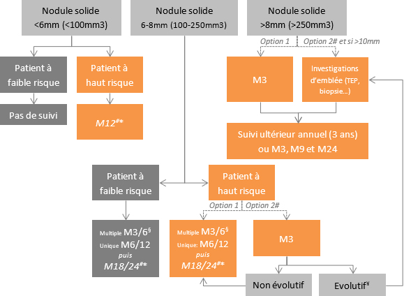 La découverte d’un nodule incident doit faire reprendre l’algorithme à son commencement et nécessite une vigilance particulière.